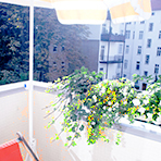 | Equipment: | The living room is with two single beds (90x200) which can also be placed as a double. There is a dining table you also can use as a working table. Also find a reading corner, TV and CD-player. The balcony is with a deckchair. The kitchen is with a small coffee table and everything you need to cook. In the hall, you find a spacious wardrobe. The bathroom is with washing machine and tub. Kein Energieausweis erforderlich Baudenkmal. |